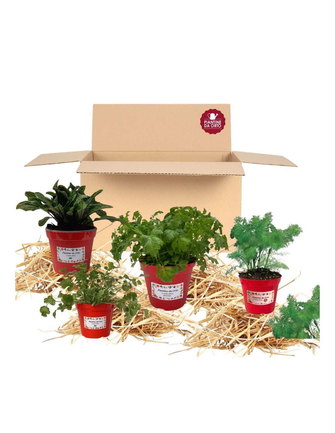 Kit orto pronto composto da Erba madre, Finocchio selvatico, Anice e Rabarbaro da coltivare anche sul balcone di casa.