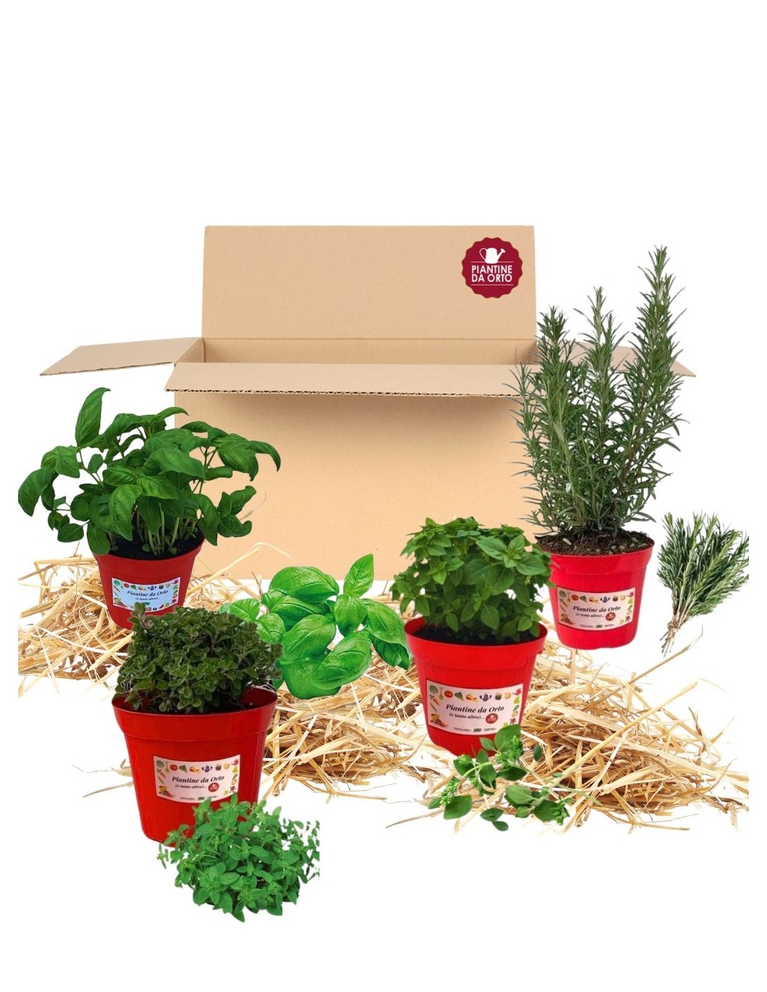 Kit orto pronto composto da Origano, Basilico, Maggiorana e Rosmarino da coltivare anche sul balcone di casa.