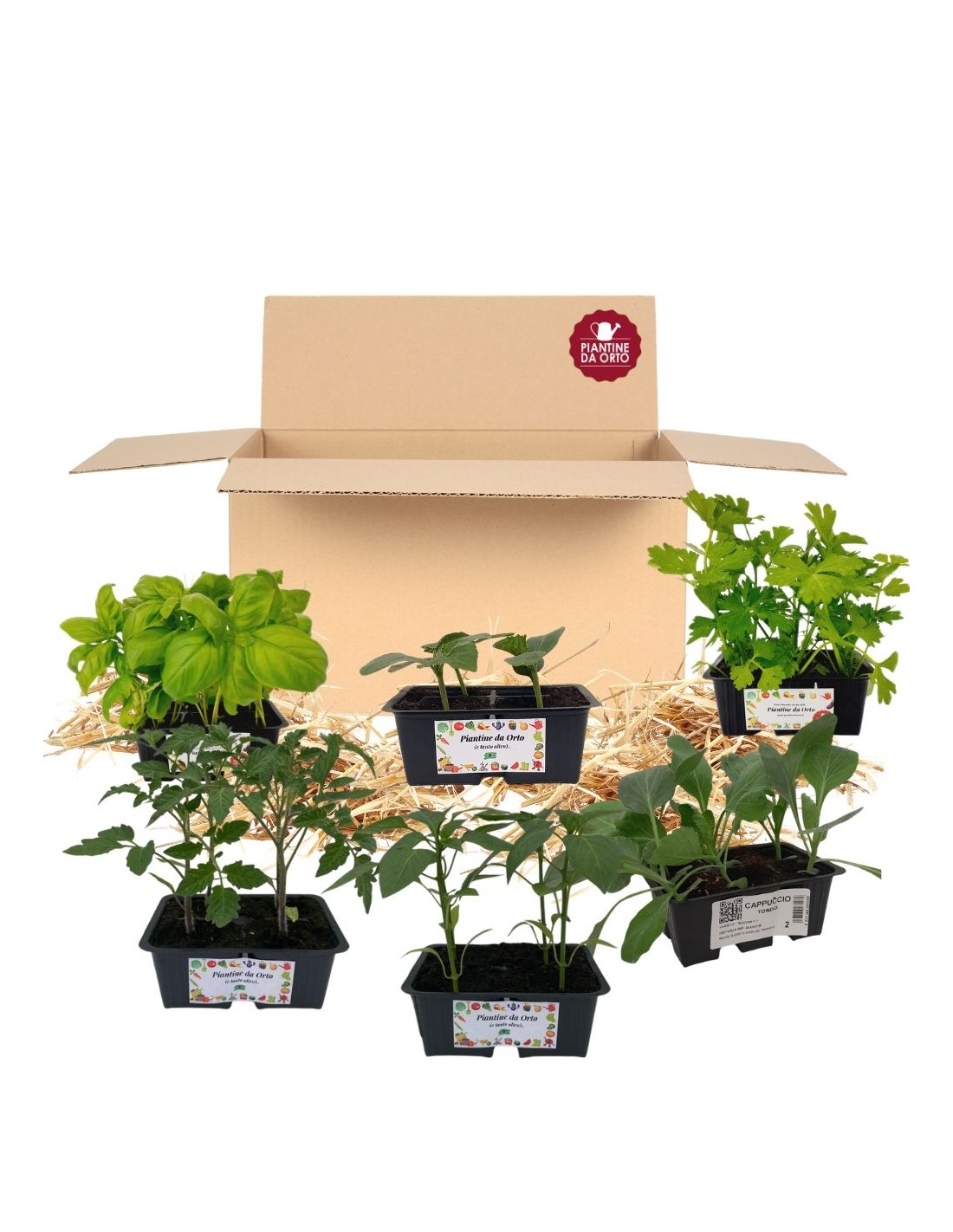 Kit orto pronto composto da: Basilico, Cetriolo, Sedano, Cappuccio, Pomodoro e Peperone.