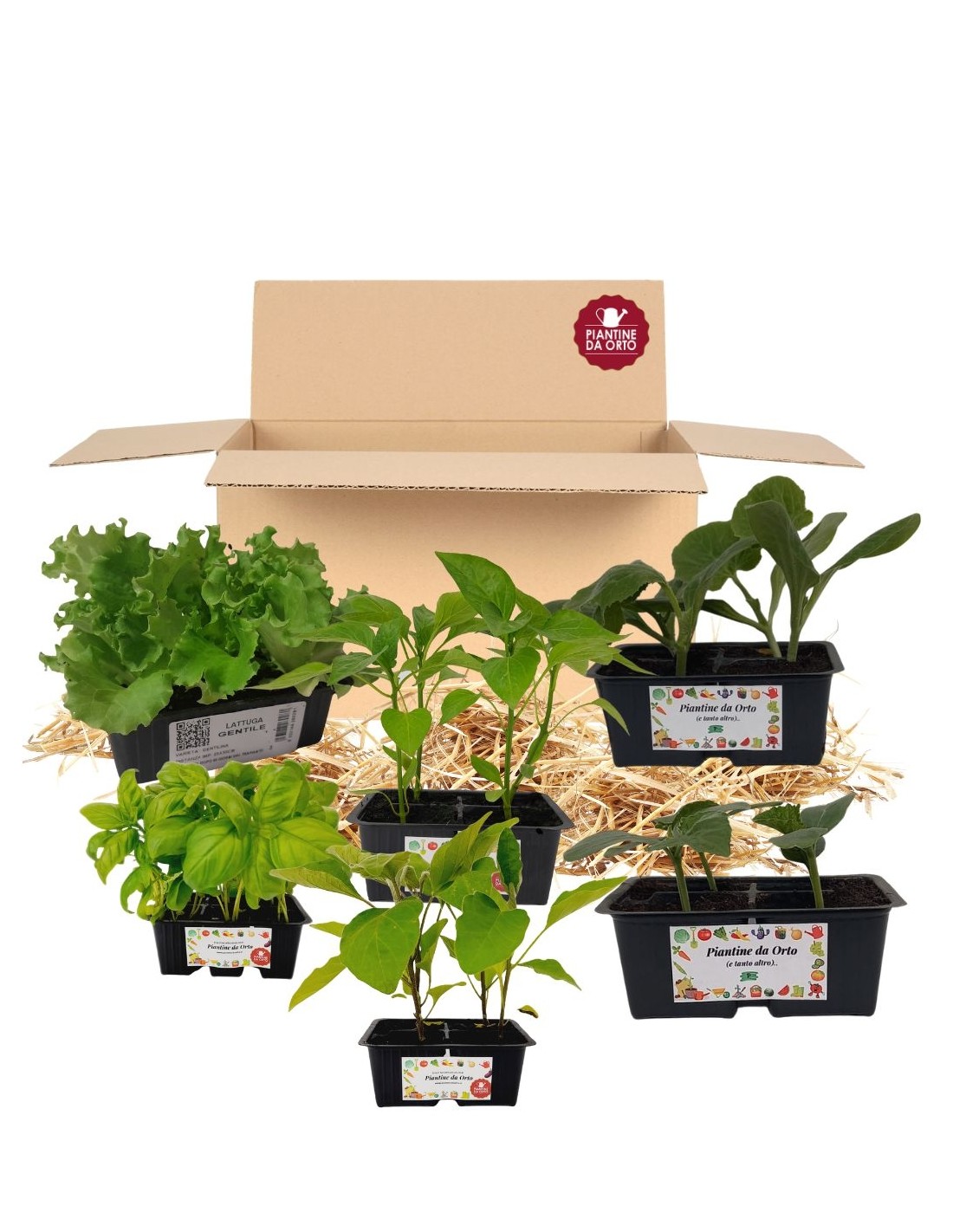Kit orto pronto composto da: Zucchino, Lattuga, Peperone, Basilico, Cetriolo e Melanzana.